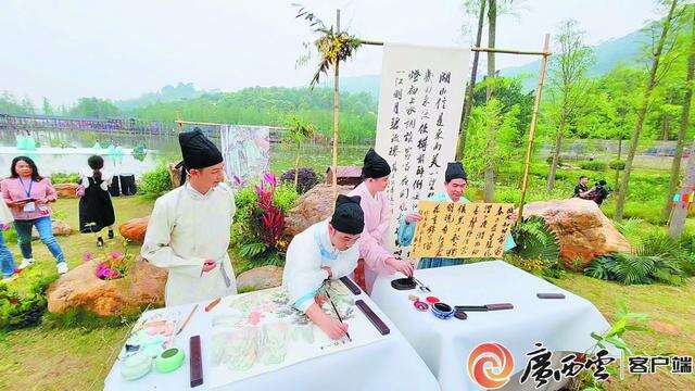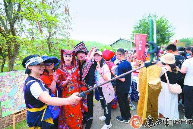 4月21日上午9时许,嘉宾们将青翠的柳枝插进湖边堤岸,通过插柳迎春这一传统仪式,寄托了插柳成荫,祈求生机勃勃的美好寓意,表达珍惜友情、祈福安康的美好心愿。在古风古韵中拉开了2023年“壮族三月三·八桂嘉年华”文化旅游品牌活动的帷幕。