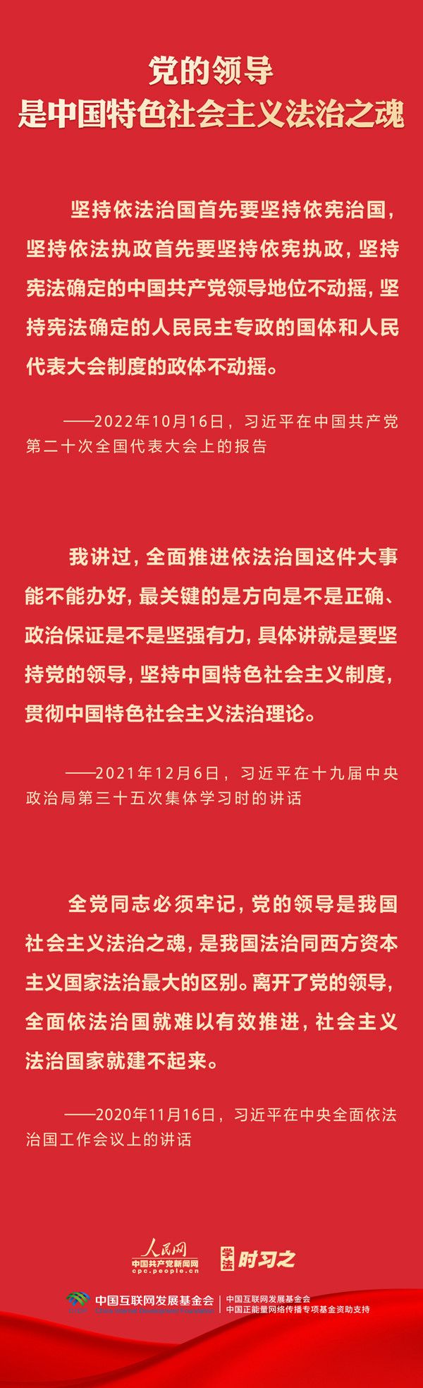 今年是贯彻落实党的二十大精神的开局之年。中共中央政治局决定从今年4月开始,在全党自上而下开展学习贯彻习近平新时代中国特色社会主义思想主题教育。习近平法治思想是习近平新时代中国特色社会主义思想的重要组成部分,人民网·中国共产党新闻网推出学法时习之·学习习近平法治思想系列策划,本篇聚焦“坚持党对全面依法治国的领导”。