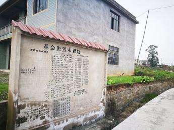 重庆市合川双槐镇,群众捐资修建的“革命先烈木森路”,左下方“唐木森个人简介”里的文字已被雨水洗去了一些着色。