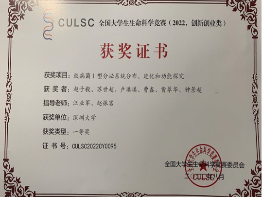国家级全国大学生生命科学竞赛(创新创业)一等奖