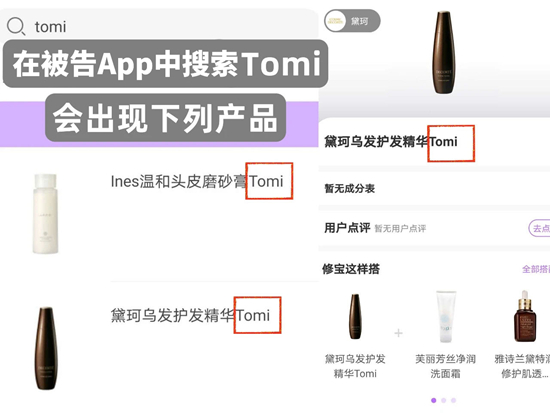 这些发现印证了透明生活公司的猜测不是毫无根据。透明生活公司开始考虑如何维权以及如何取证。“我们不可能大量制造错误数据,因为大规模的错误数据会影响用户的正常使用。”透明生活公司数据团队在仔细思考后,决定在部分产品名称里面植入“Tomi”标识,通过这一标志,表明数据来源于“透明标签”。接下来,透明生活公司发现,被告公司的App上竟然也出现了带着“Tomi”标识的美妆产品。