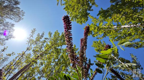 △巴彦淖尔临河区国营新华林场内种植的紫穗槐和小叶杨。(总台央视记者许永松拍摄)