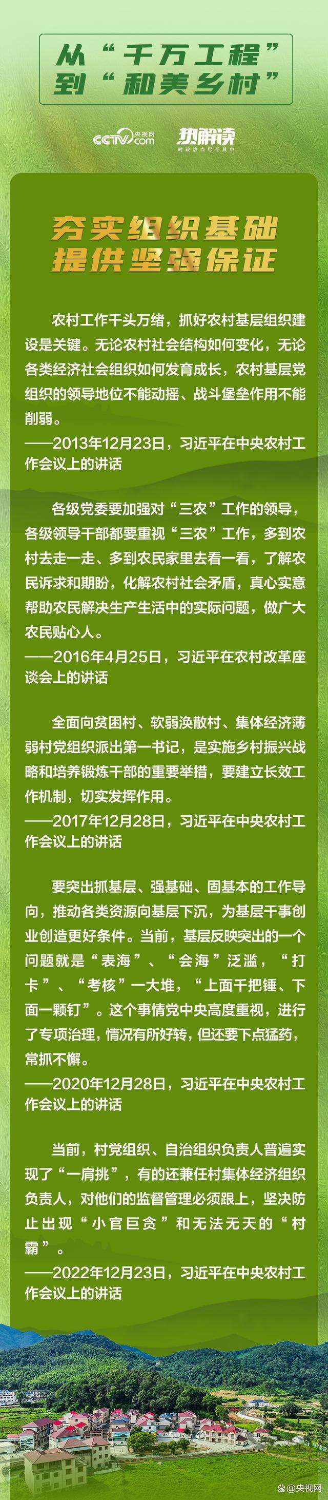 央视网《热解读》栏目特别策划“从‘千万工程’到‘和美乡村’”系列解读文章,紧扣乡村振兴战略“产业兴旺、生态宜居、乡风文明、治理有效、生活富裕”总要求,全面展现新时代中国多措并举建设宜居宜业和美乡村的生动实践。