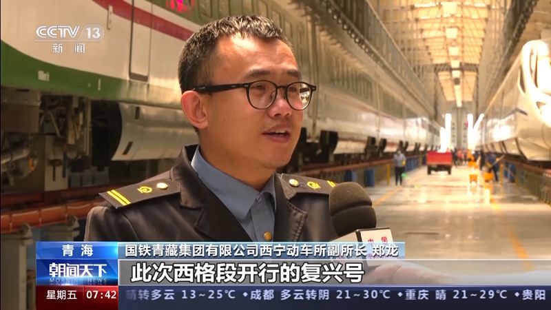 国铁青藏集团有限公司西宁动车所副所长 郑龙:此次西格段开行的复兴号CR200J动力集中型动车组,它所采用的动力方式更为绿色环保,运行更为平稳,旅客乘坐舒适度更高。