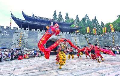 在浙江嘉兴子城遗址公园广场进行的舞龙表演。新华社发