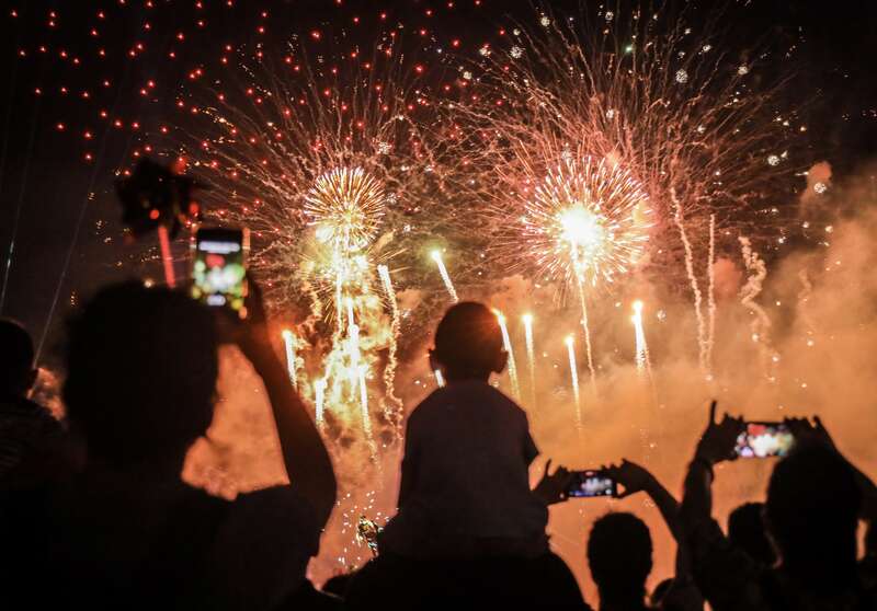 夜幕降临,游客们不仅能看到数百种烟花在夜空中绚烂绽放,还能目睹300台无人机在光与影的交织中直冲云霄,激光棱镜穿透烟雾与水花,水上飞人高空飞行与“鲸鲨”并肩。此外,游客还能在滨海河岸亲手燃放手持烟花等,打卡黄金机位,与绚烂烟花合拍大片。
