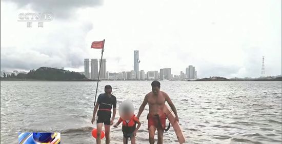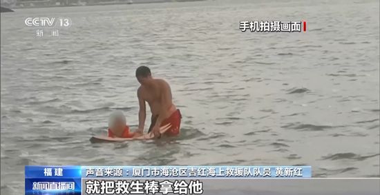厦门市海沧区吉红海上救援队队员 黄新红:急流一直把他往海中间带过去,男孩已经很恐慌了 。我就快速游过去,把救生棒拿给他,我说你放松,自然,抱住救生棒。然后我就侧着拖他,一边看着他,一边侧着拖上来。