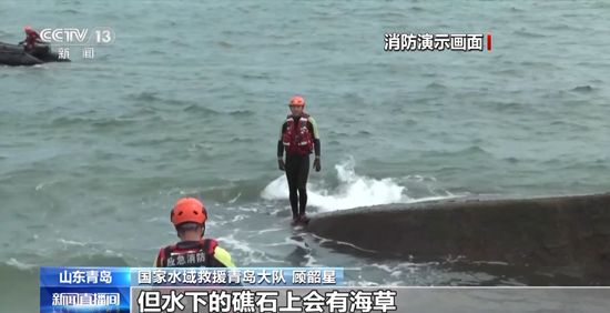 国家水域救援青岛大队 顾韶星:当我站在礁石上背对大海时,海浪涌来的一瞬间,打到我的腿上。我的腿会无力、发软。但水下的礁石上有海草,比较湿滑。当游客遇到这种情况的时候,他们会恐慌、挣扎,容易被水底下的礁石划伤。