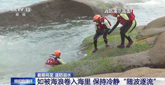 消防人员介绍,如果被海浪卷倒,人员落水,而溺水后最佳的救援时间是4分钟。那么,应该如何把握住这关键的4分钟呢?消防人员表示,游泳者遇到海浪时,不要慌张,而要“随波逐流”。