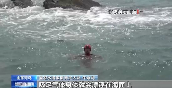牛永利:不要慌张,要保持冷静,海浪只会把人带离海岸,不会把人卷到海底。吸足气体,身体就会漂浮在海面上。遇到海浪强劲时,不要尝试逆流游回岸边,而是保持镇定,用最省力的踩水或者漂浮自救。