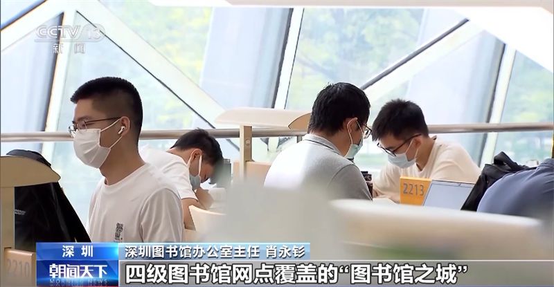 深圳图书馆办公室主任 肖永钐:公共图书馆是公共文化服务体系的重要组成部分。深圳市实现了市、区、街道、社区四级图书馆网点覆盖的“图书馆之城”,我们街道的图书馆覆盖率是达到了百分百。市民可以在家附近、在单位附近,在10分钟(时间)就找到一个图书馆,让阅读成为市民的一种日常的生活方式。