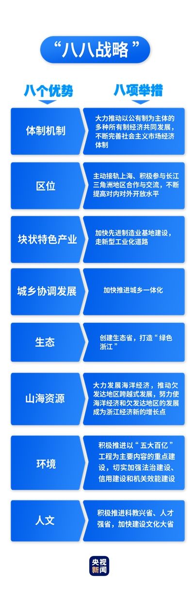总书记同时指出:“我欣慰地看到,在‘八八战略’指引下,15年来,浙江省委坚持一张蓝图绘到底、一任接着一任干,推动经济社会发展取得了历史性成就。”