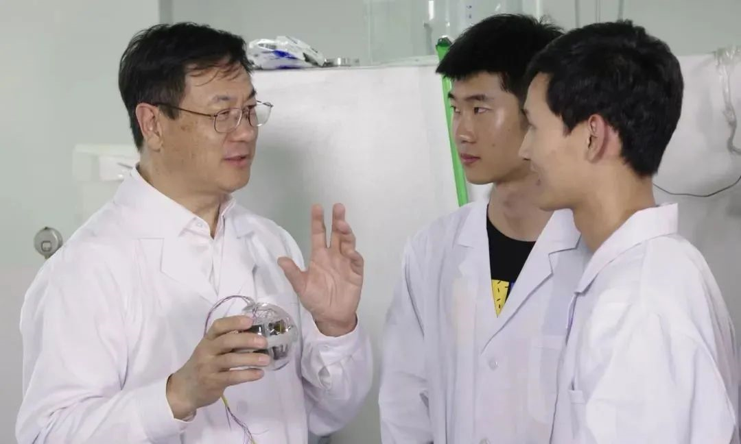 王中林(右)带领团队做研究。(北京纳米能源所供图)