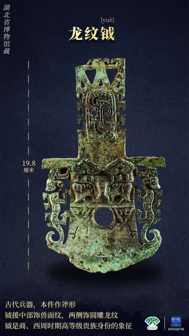 钺援中部饰兽面纹,两侧饰圆雕龙纹。