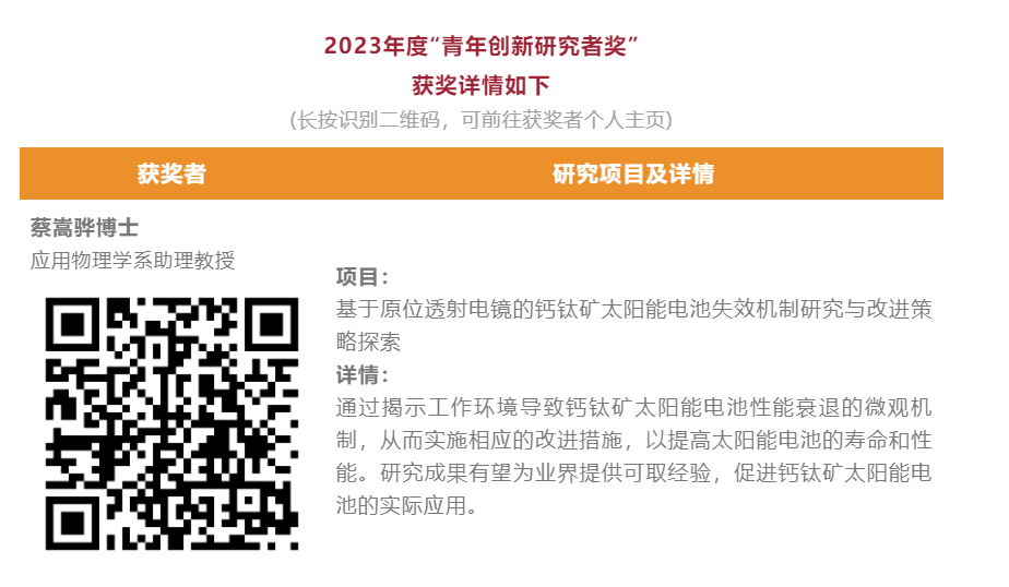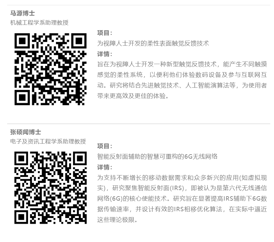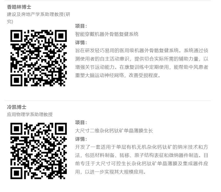 今年,学校再度颁发“青年创新研究者奖”予六位杰出的青年研究人员,以表彰在科研方面具有杰出表现的、35岁以下的理大科研人才——他们的研究项目为人类应对全球挑战带来了诸多裨益,涵盖可再生绿色能源、可穿戴医疗康复设备、纳米技术、辅助视力障碍者的软材料、人机协作制造系统和信息网络等多个领域。