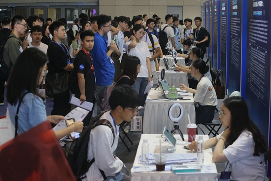 7月20日,南京国际博览中心,2023“芯机会 芯人才”全球集成电路人才专场招聘会,求职者在寻找就业岗位。视觉中国供图