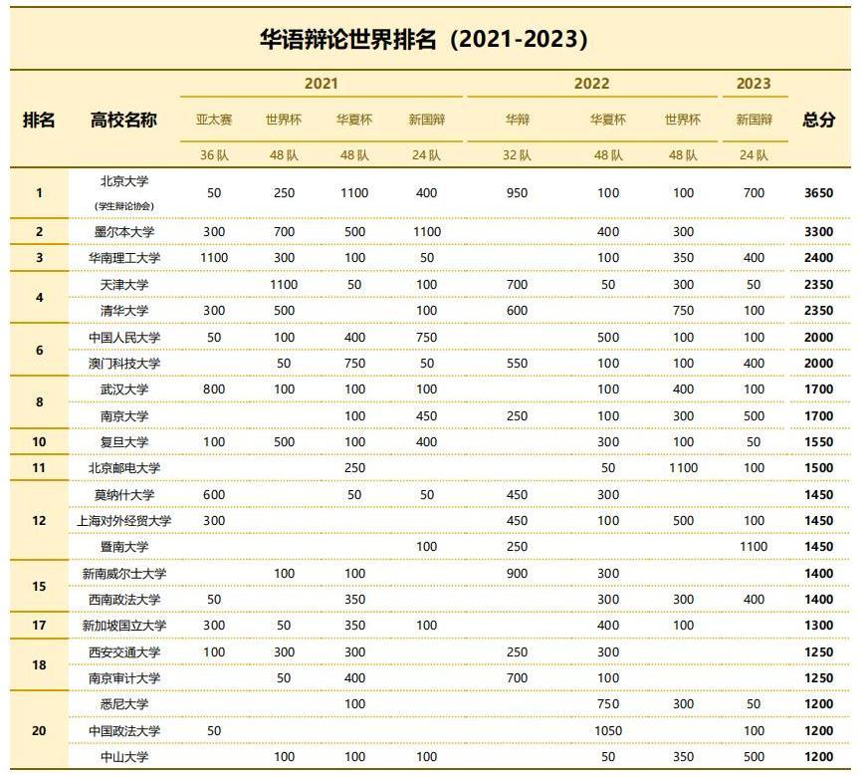 今年,北大辩协在持续更新的华语辩论世界排行榜中荣登榜首!