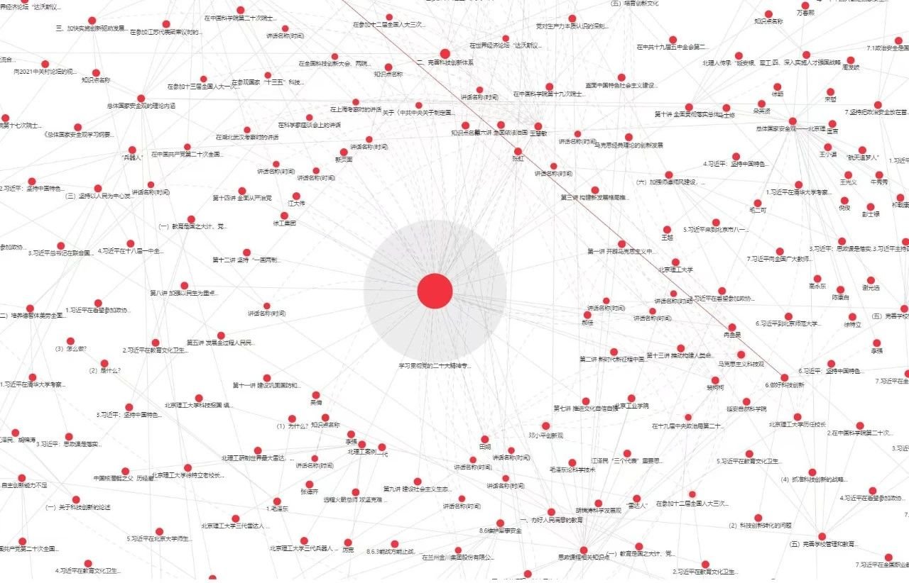 3500余个相关知识点、7500余个关联层构成了智慧学习体系,一张张云图,一串串知识点,一组组关联层,实现了学习内容的系统化、逻辑化、结构化、可视化……在北京理工大学主题教育读书班开班仪式上,马克思主义学院教师利用知识图谱进行了党的创新理论示范导学,使得理论学习“既树木又见森林”。郝佳作为研发团队核心成员,全程深度参与了党的创新理论知识图谱的构建。