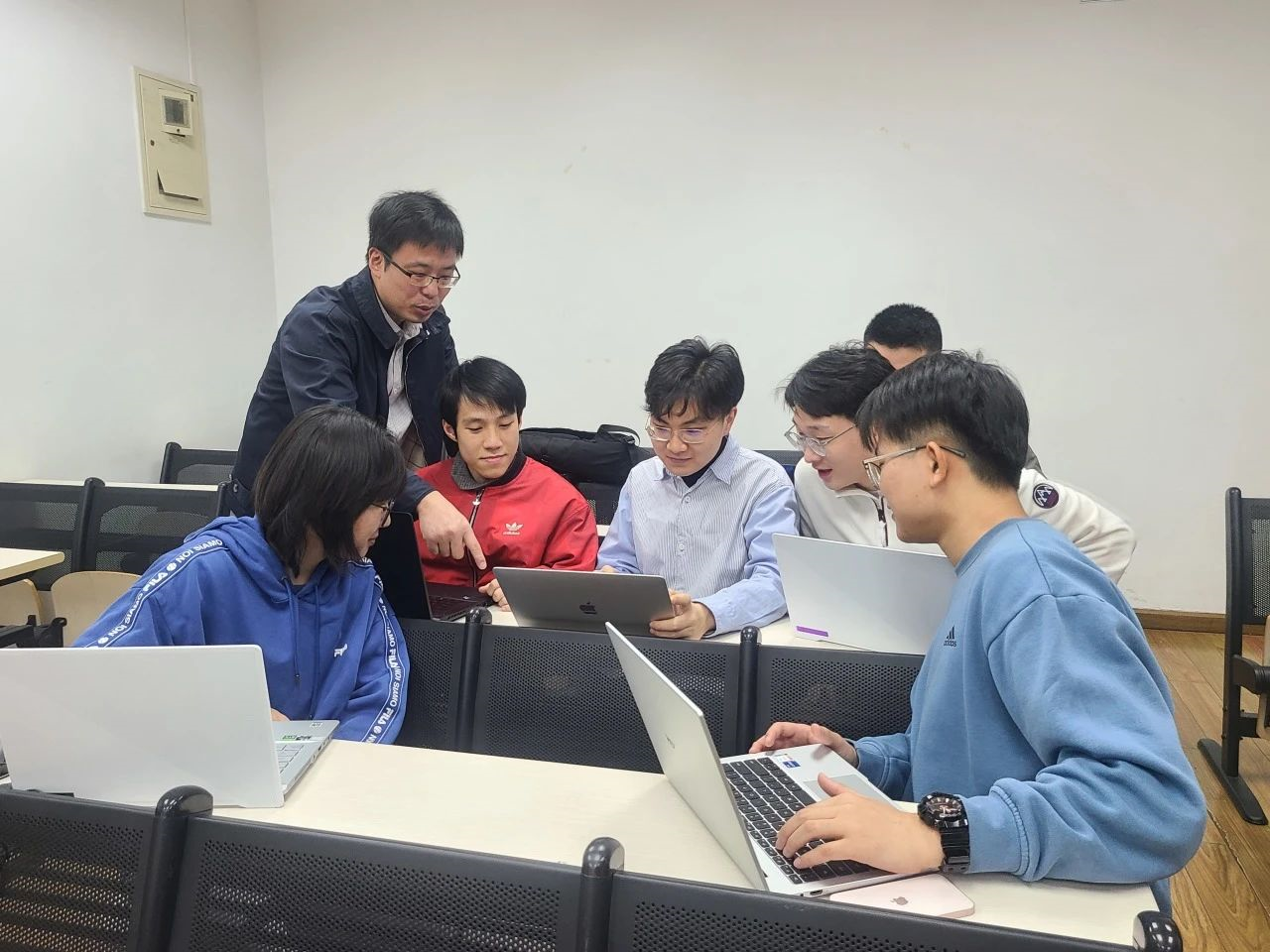 郝佳与学生讨论问题