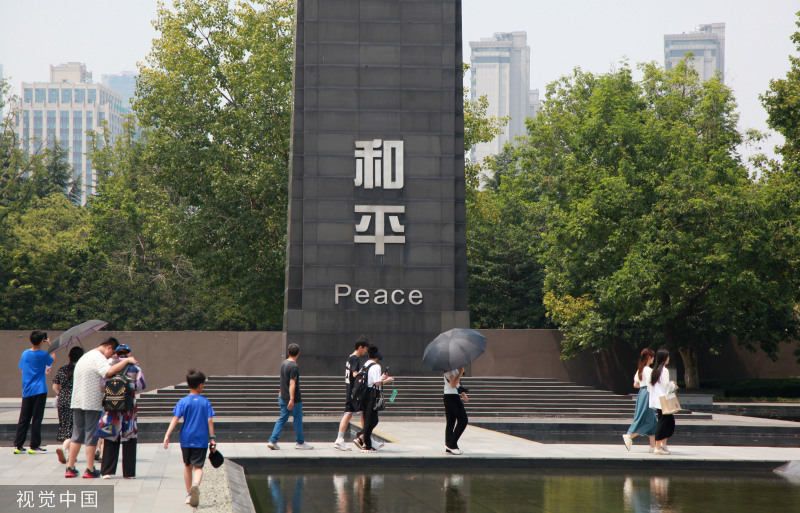 2023年8月13日,南京市,日本宣布无条件投降78周年前夕,大批市民和游客冒着高温酷暑,来到位于江东门的侵华日军南京大屠杀遇难同胞纪念馆参观、瞻仰,悼念南京大屠杀30万遇难同胞。