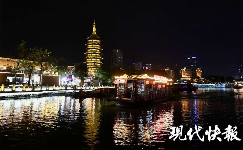 画舫前行,移步换景,灯带勾勒出两岸风光。常盈桥、水门桥、越秀桥……一座座桥梁迎面而来,将淮安昔日的繁华渐次铺展。