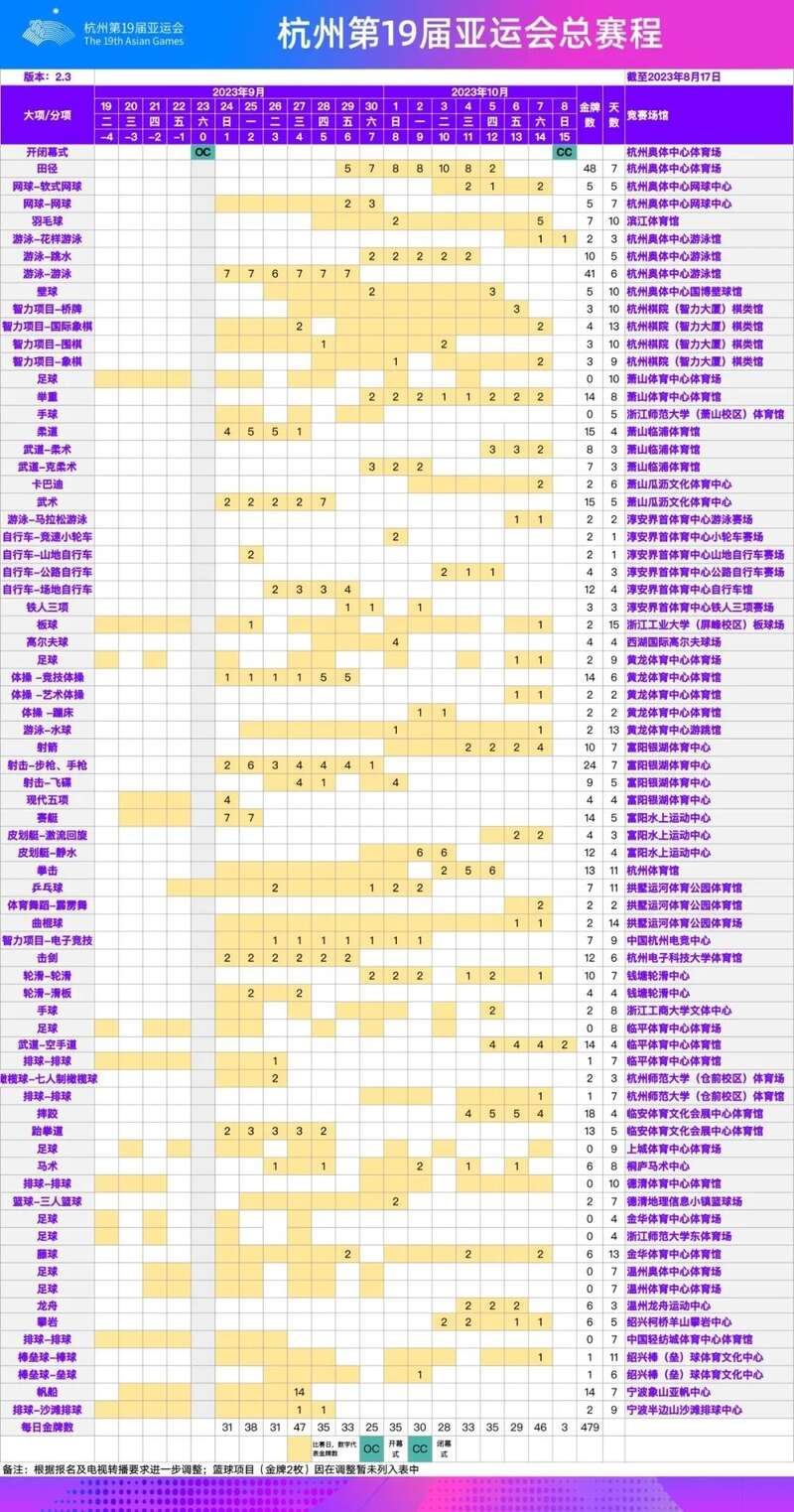 杭州亚运会总赛程最新版来了!你最期待哪个项目?