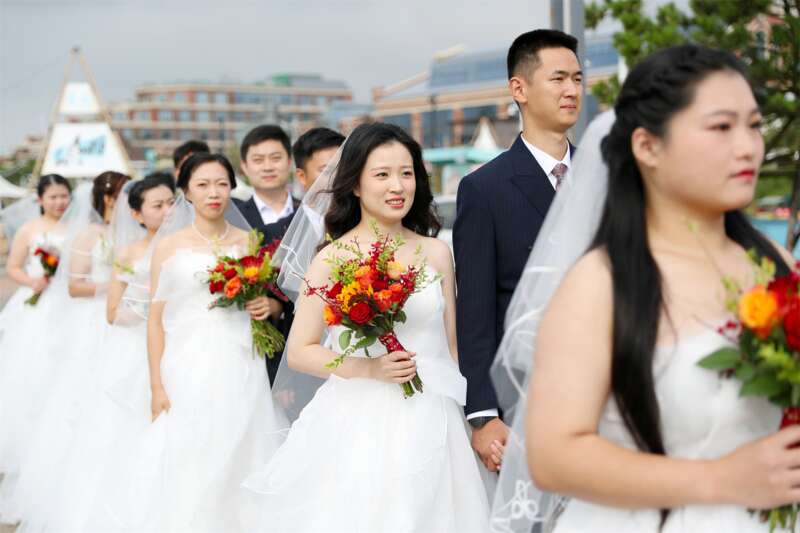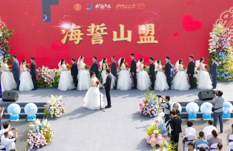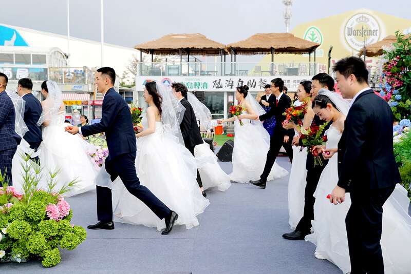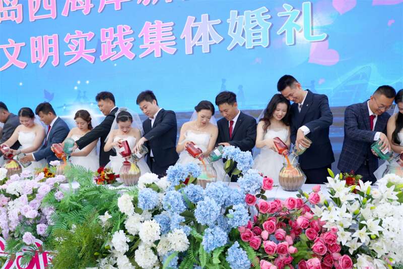 甜蜜来袭 山东青岛12对新人举行集体婚礼