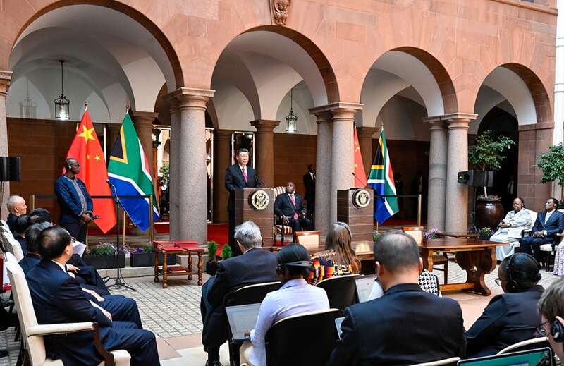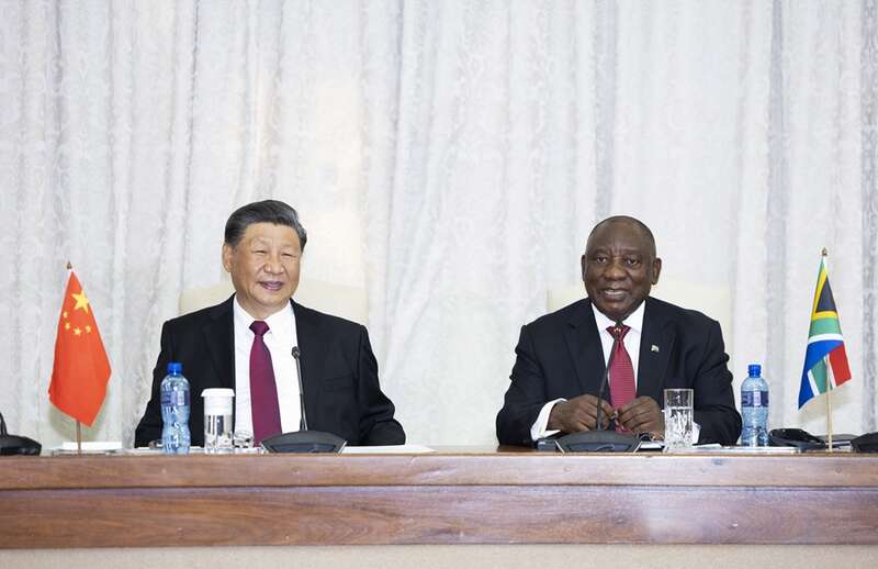 拉马福萨表示,中国在南非争取民族独立解放、实现国家发展进程中给予南非宝贵支持,在新冠疫情等艰难时刻雪中送炭,是南非真诚的兄弟、朋友和伙伴。