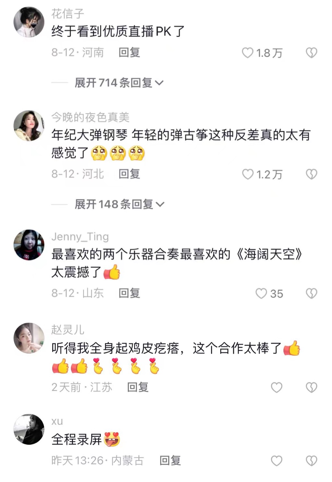 和@段俊 @钢琴家叶子宸 等西洋乐器主播