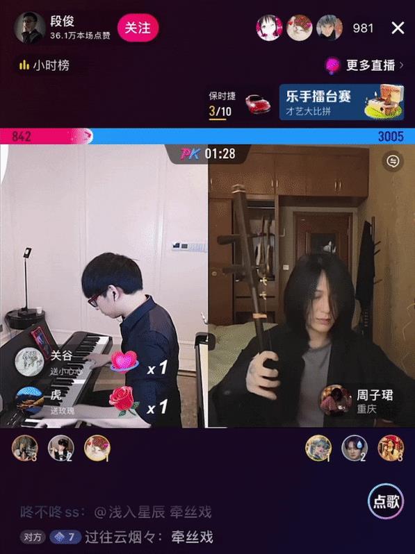 则在直播间PK合奏了