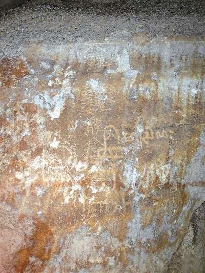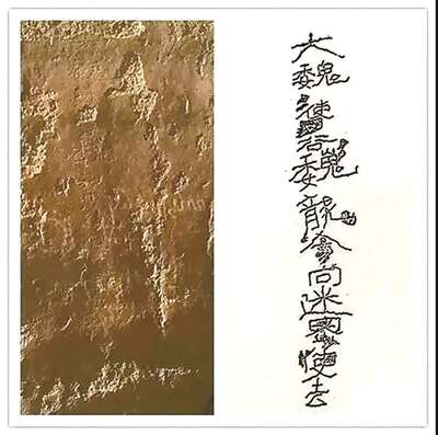 虽然刻得有点歪歪扭扭,但依稀可以辨认出竖着的“大魏……魏龙……”几个字,其余都很难辨认,看上去似乎是涂鸦。一时间我甚至不敢相信这真的是古人所刻。