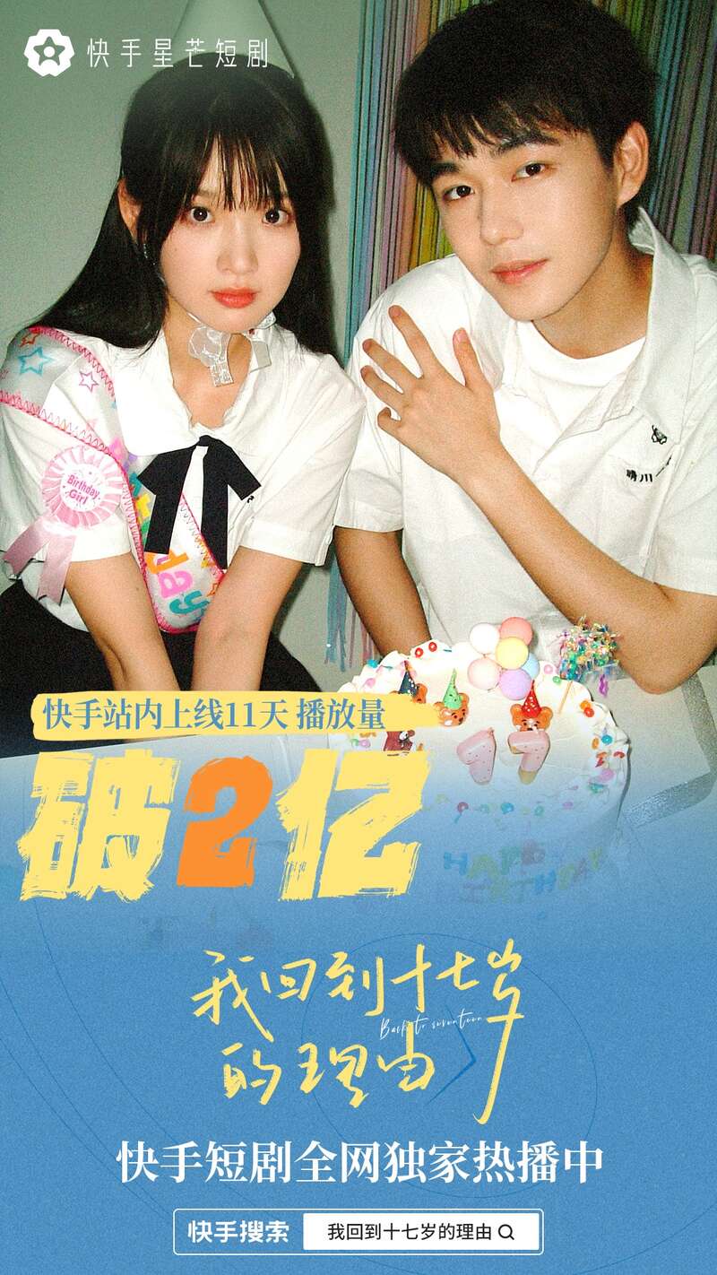 据介绍,自8月30日在快手星芒短剧独家播出以来,《我回到十七岁的理由》快速获得了广大粉丝的喜爱,目前已成功登顶快手平台的短剧榜TOP1,站内上线11天播放量突破2亿。