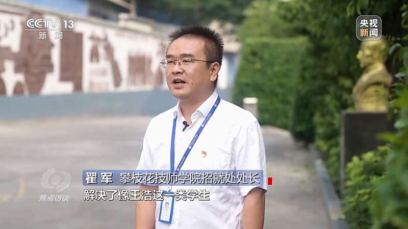 攀枝花技师学院招就处处长 翟军:为学生减免学杂费的同时,为学生提供每年每生3000元的生活补助,解决了像王浩这一类学生继续就读优质教育的后顾之忧。