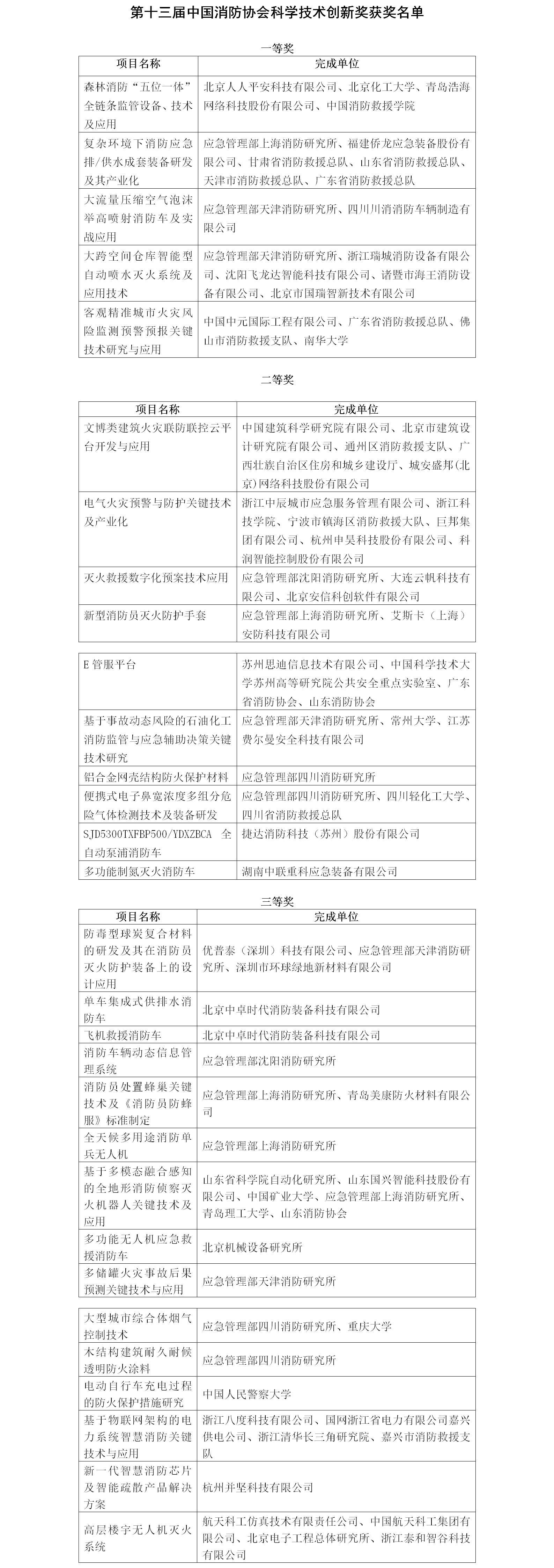 30项消防科研成果获第十三届中国消防协会科技创新奖