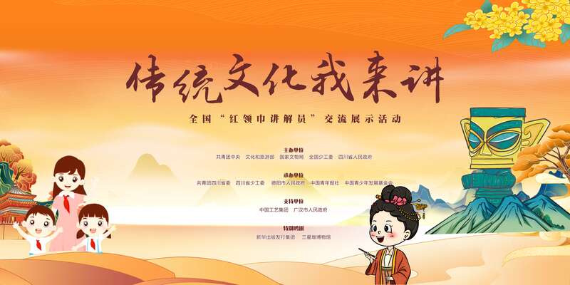 活动期间,还将开展全国少年儿童传统文化实践示范营,组织“红领巾讲解员”到三星堆国家考古遗址公园进行参访学习、实地打卡,通过互动性、体验性项目,体悟中华优秀传统文化魅力,切身感受新时代中国的伟大成就。携手文化领域专家学者、文化媒体负责人、知名中小学校长以及全国各地的传统文化主题场馆负责人,召开“加强少年儿童中华优秀传统文化教育”座谈会,分享弘扬践行传统文化的成功经验,为培育新时代中华文化传承人做出积极的努力和探索。发布全国首批中华优秀传统文化实践打卡路线,号召各地少先队组织联动相关场馆阵地,深化开展“红领巾讲解员”活动,广泛组织少先队员进行志愿讲解、沉浸体验。发布争做中华优秀传统文化的传承者倡议书,由“红领巾讲解员”代表向全国少先队员发出倡议,号召全体少先队员学习好、传承好中华优秀传统文化,坚定文化自信,争做中华优秀传统文化的传承者。