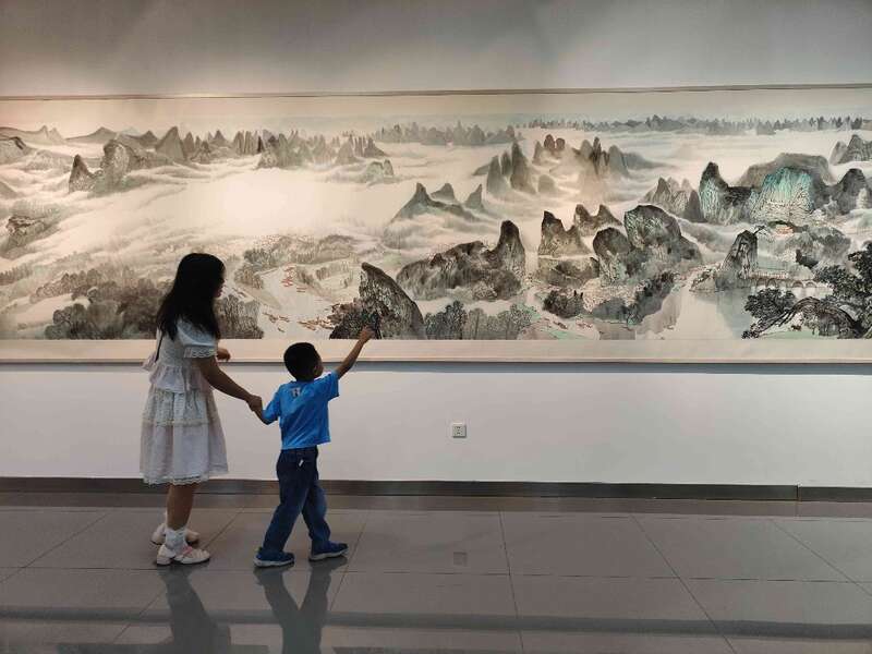 中国青年报客户端讯(中青报·中青网记者 谢洋)9月27日,广西艺术学院重大现实主义题材百米长卷创作“三部曲”的收官之作——《八桂壮美锦绣图》在广西艺术学院南湖校区漓江画派艺术中心亮相。