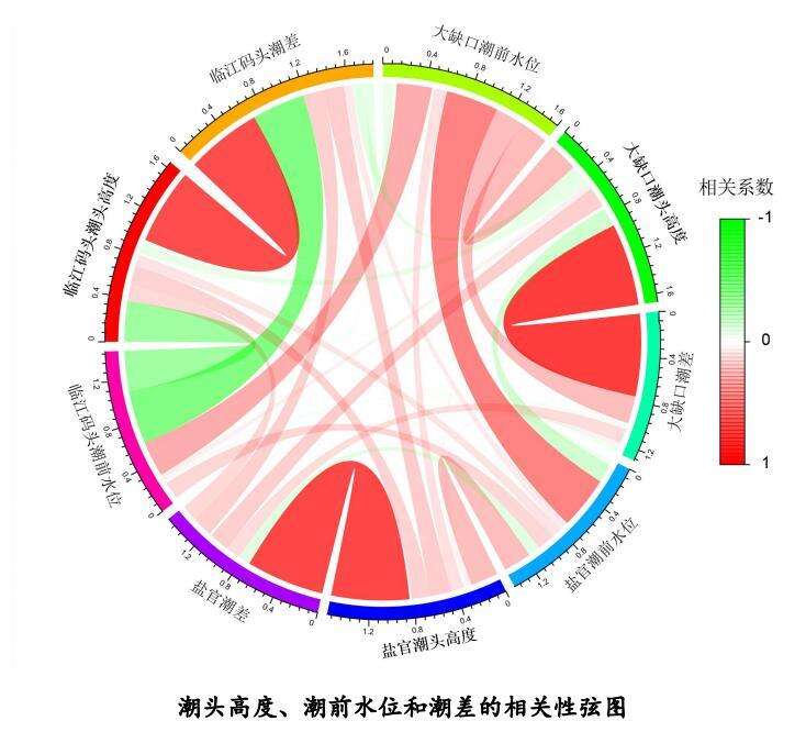 涌潮高度的主要影响因子为当地潮差,两者间呈高度正相关关系,当地潮差越大,该区域涌潮高度越高。受钱塘江纵向沙坎和滩槽变化的影响,涌潮高度和潮前水位的相关性较为复杂,不同区域存在较大差异,在临江码头,潮位水位越低,涌潮高度越高,而在大缺口、盐官,潮位水位越高,涌潮高度则相对较高。