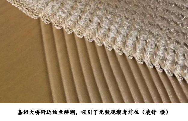 当波纹潮与一线潮两股潮交汇,形成鱼鳞潮。