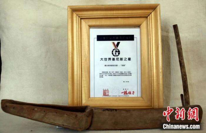 新疆且末出土的箜篌获“大世界基尼斯之最”证书。新疆博物馆供图