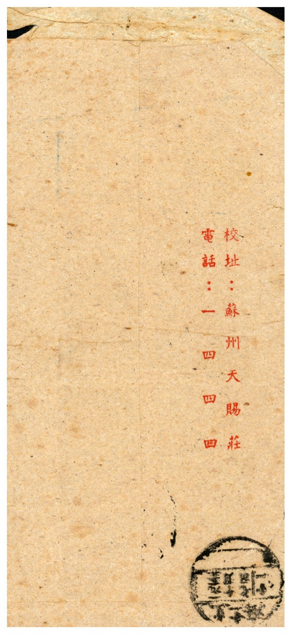 (东吴大学入学通知书信封背面)