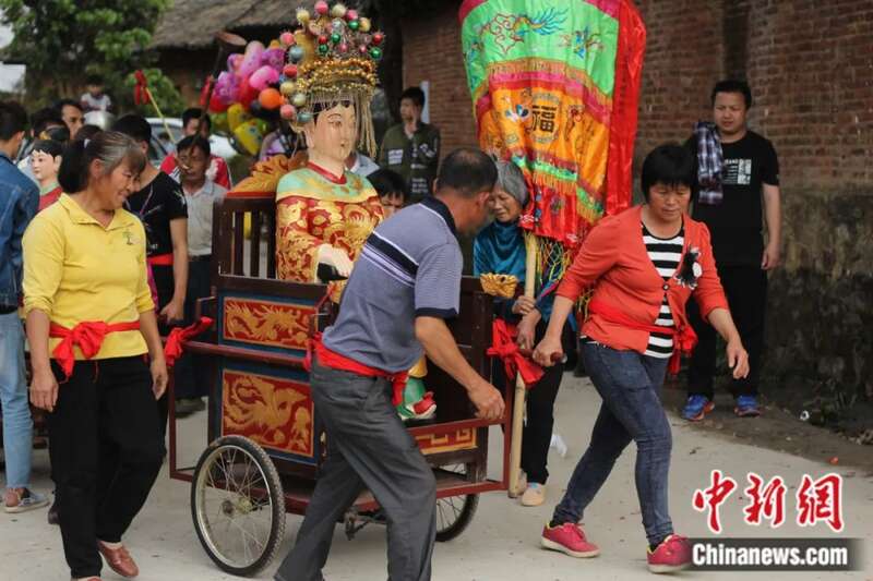 冼夫人(神像)在信众的簇拥下巡视本土,为这里的人们带来心灵的慰藉。苏峥 摄