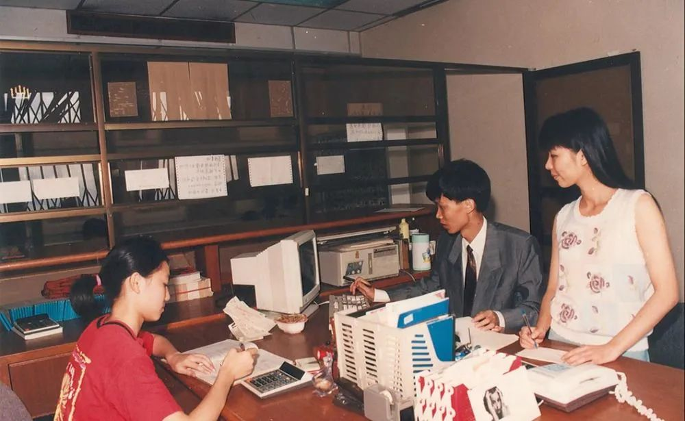 1985年2月,经中国人民银行深圳市分行批准,成立深圳大学实验银行,由学生自我管理。图为在校学生在实验银行工作。