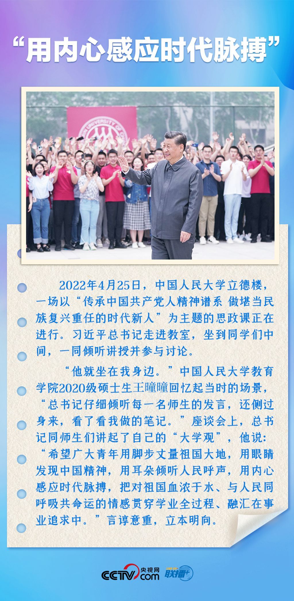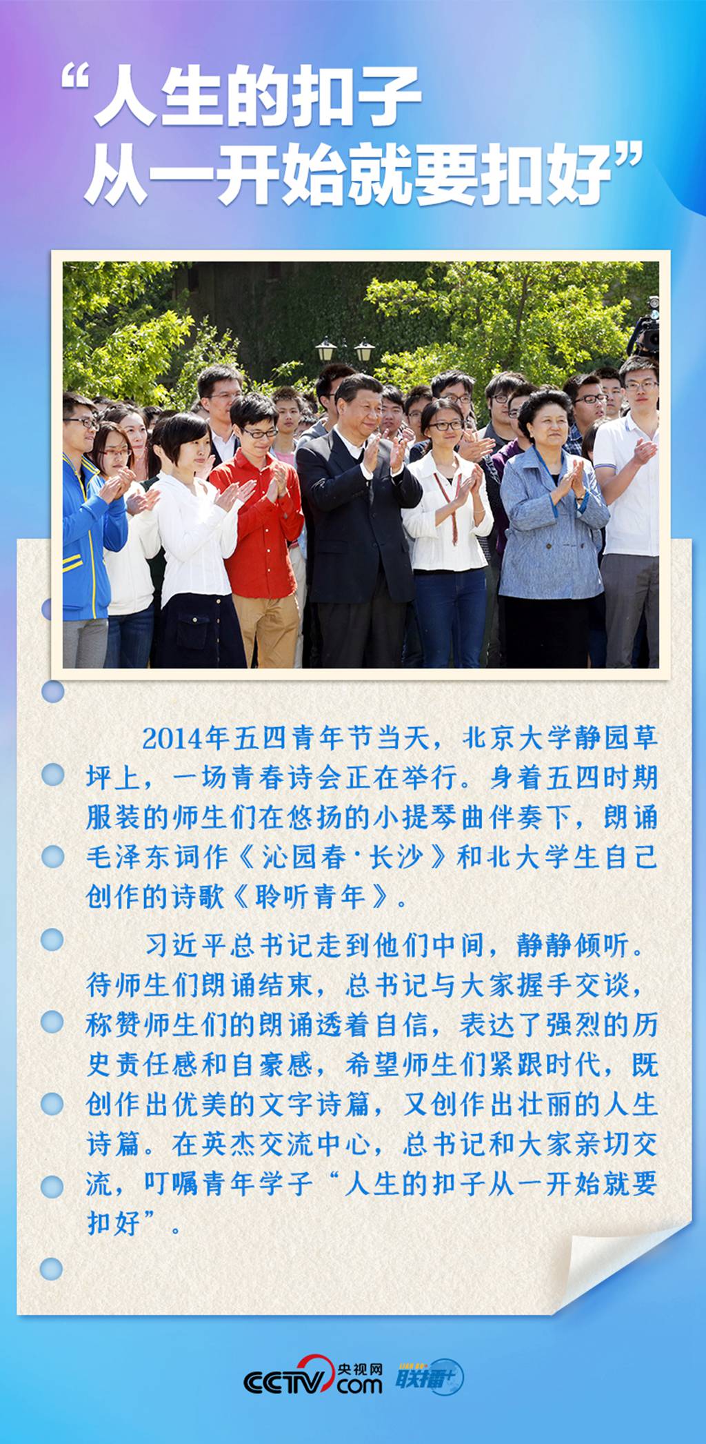 习近平总书记非常关心青年成长,多次来到青年中间,同大家推心置腹谈理想信念、谈人生价值、谈奋斗奉献。