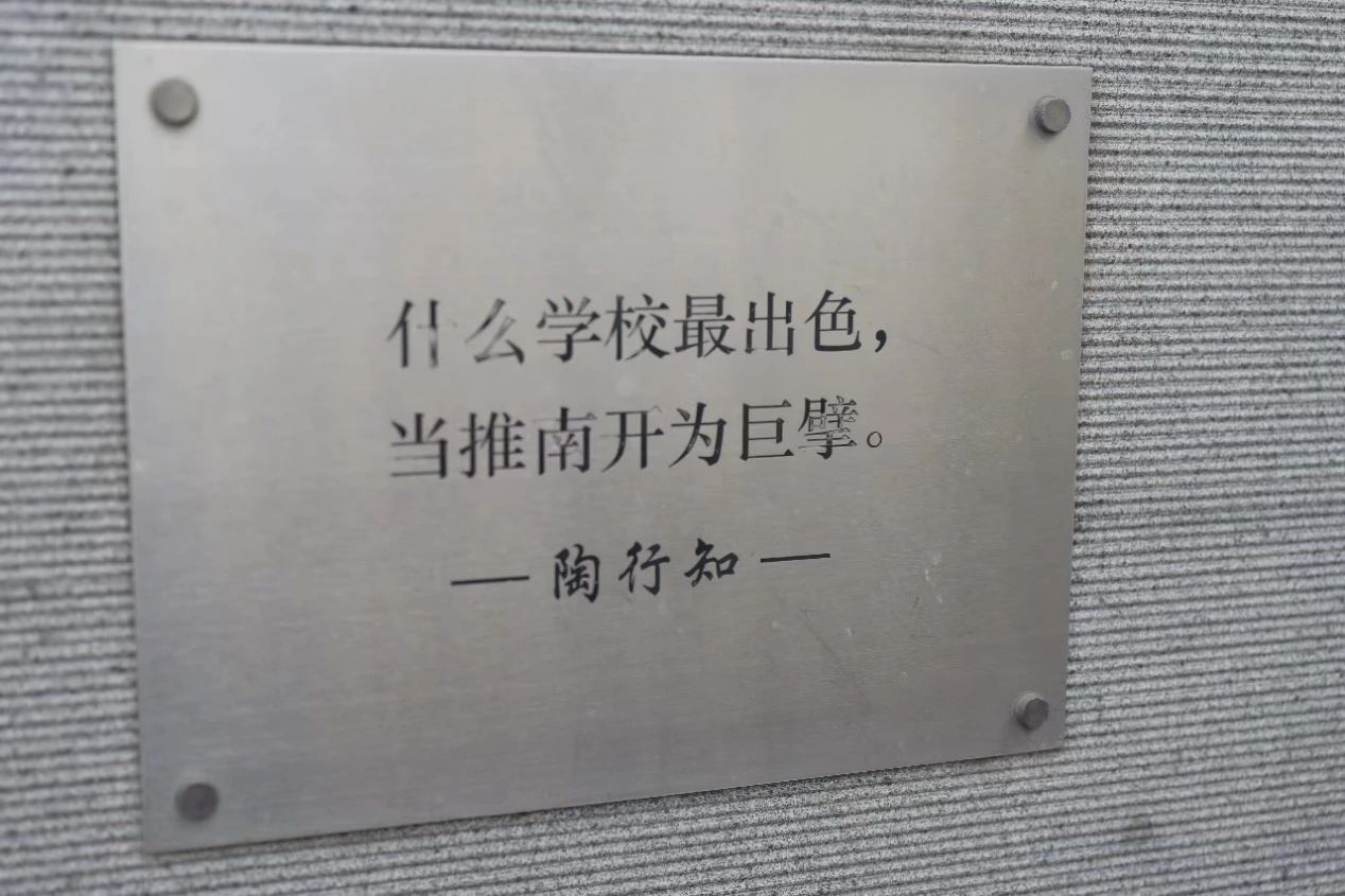 “光景西驰流”,涓涓不绝的历史名人在百年南开的共进中花开并蒂、相辅相成;“学堂青玉案”,学府北辰的南开校园在名众玉言的点缀下允公允能、日新月异。
