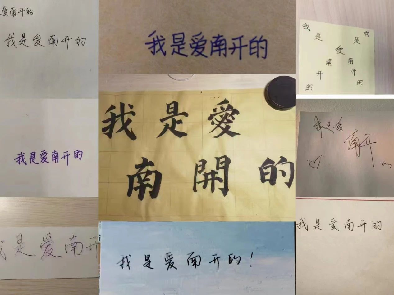 我们还邀请多名南开学子手书“我是爱南开的”。让我们共同把小我融入大我,知中国服务中国,以实际行动践行公能日新、爱国奋斗的南开精神。