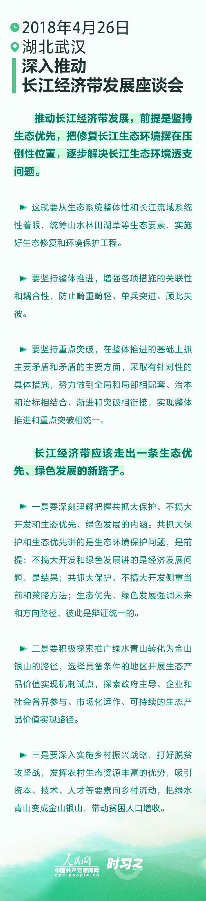 党的十八大以来,习近平总书记先后四次主持召开座谈会,强调“坚持共抓大保护、不搞大开发,坚持生态优先、绿色发展”作为重中之重,为推动长江经济带高质量发展谋篇布局。