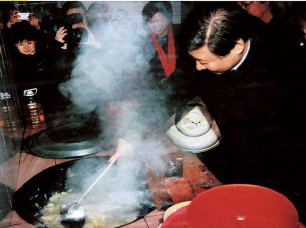 厨房的大铁锅里热气腾腾,香味氤氲,向四周扩散开来。时任浙江省委书记的习近平,一边娴熟地炒着包心菜一边和大家拉家常,气氛热烈温暖。