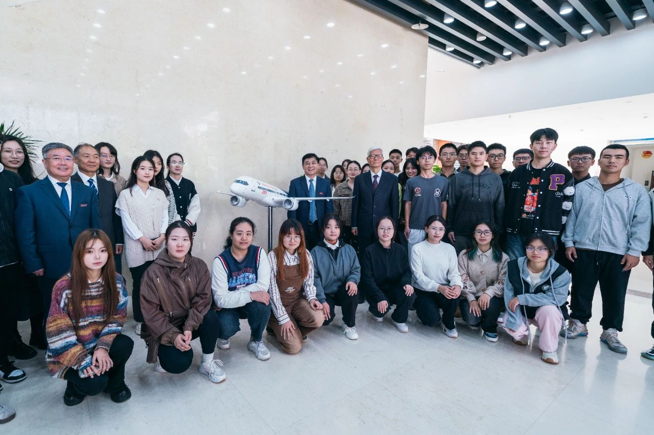 捐赠仪式后,张彦仲院士作了题为“中国大飞机工程”的报告,围绕“国内外的大飞机”“C919大飞机工程”“C929远程宽体客机”等三个部分,介绍了飞机的百年发展史,讲述了中国大飞机工程的历史演变和未来的发展方向。