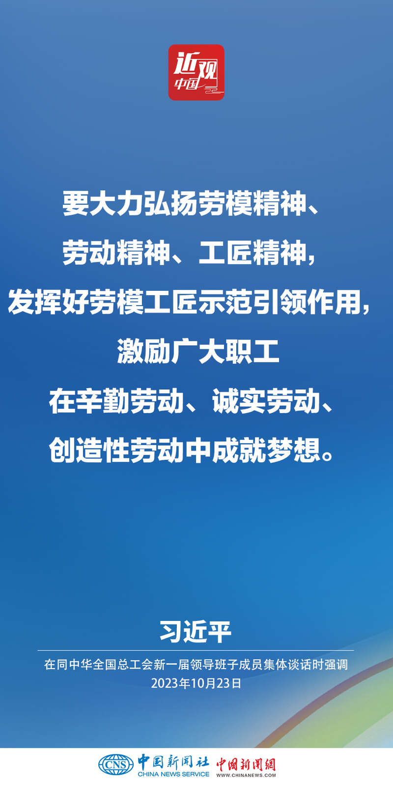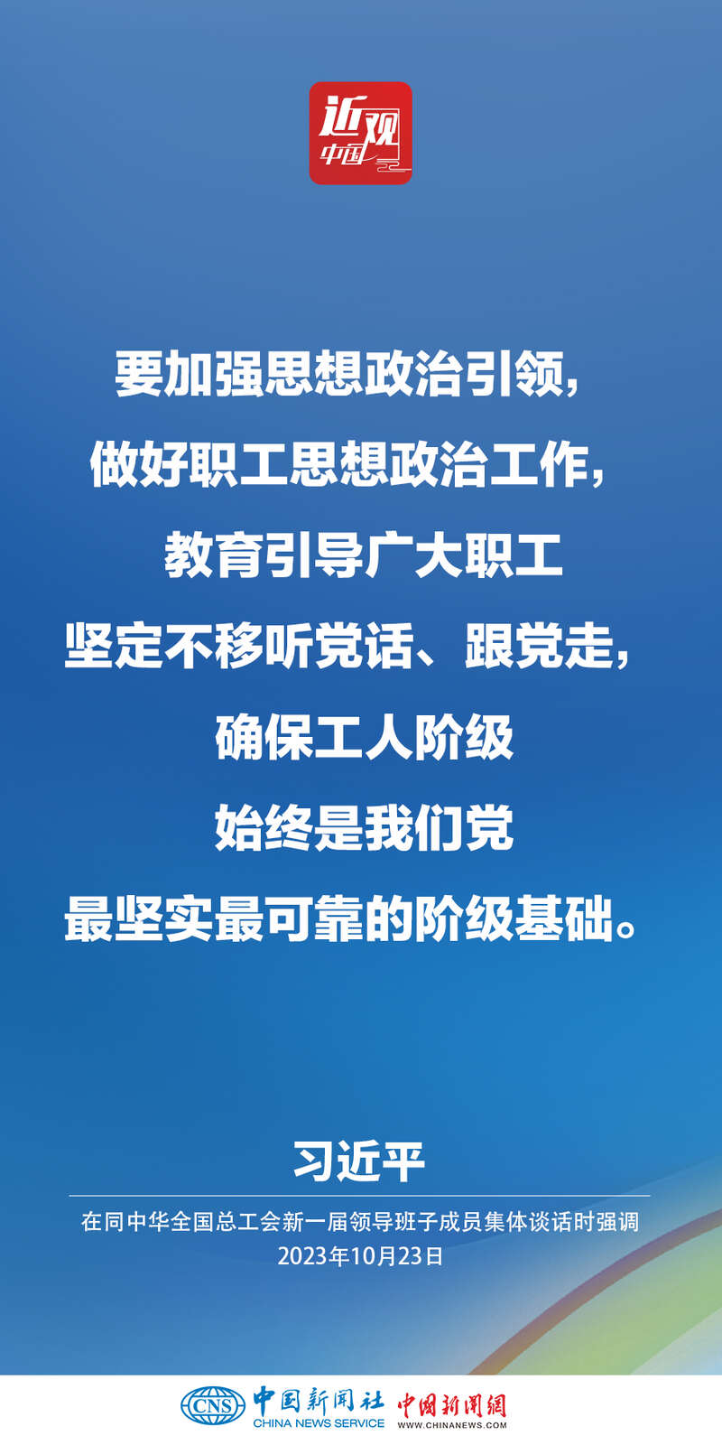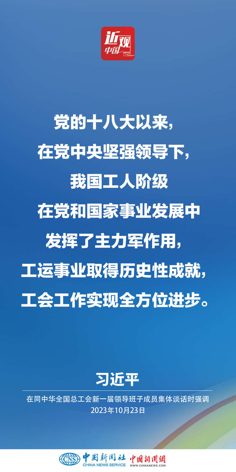 中共中央总书记、国家主席、中央军委主席习近平23日下午在中南海同中华全国总工会新一届领导班子成员集体谈话并发表重要讲话。他强调——