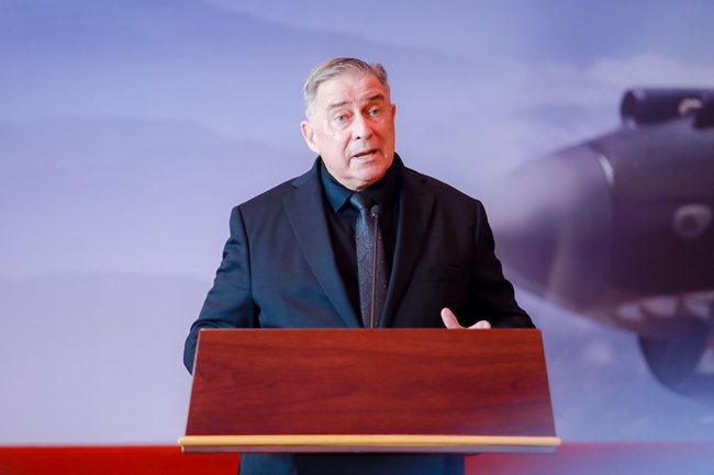 2023年10月30日,美中航空遗产基金会主席杰弗里·格林在中国人民抗日战争纪念馆的活动中发表讲话。中国人民对外友好协会供图